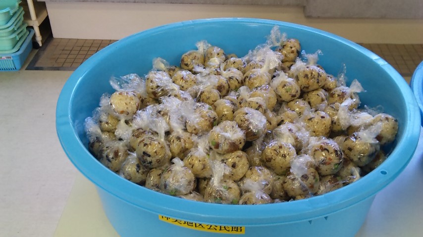 今年は初めてアルファ化米という災害用のお米を使って、おにぎりを作りました。